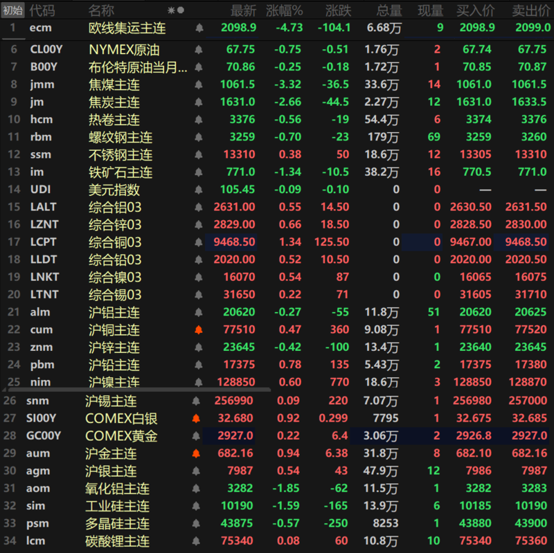 美元走低金属普涨伦铜涨逾1%领涨铁矿7连跌欧线集运跌超4%【SMM日评】