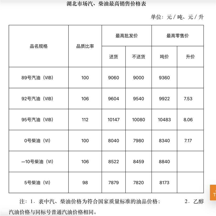 记者从省发展改革委价格管理处获悉,根据近期国际市场油价变化情况和国家发改委调价信息,自3月5日24时起,国内汽、柴油价格(标准品)每吨分别下调135元和130元。调价后,我省汽、柴油最高零售价格相应调整,省内92号、95号汽油、0号柴油每升分别下调0.11元、0.12元、0.11元;调价后,92号、95号汽油分别降至每升7.53元、8.06元,0号柴油降至每升7.17元。