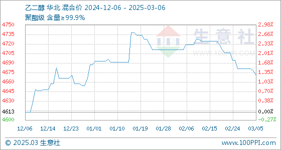 3月6日生意社乙二醇基准价为4671.67元/吨
