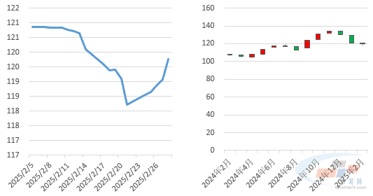 图1、2:2025年2月全国水泥价格指数CEMPI、水泥价格指数(CEMPI)K线图