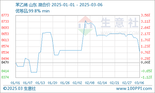 据生意社商品分析系统,6日,苯乙烯市场价格下跌,日跌幅0.93%。整体来看,国际油价近期下跌,原料端支撑一般。供应端开工小幅下滑,港口库存高企。下游把3S开工恢复至正常水平,但库存累积高位,开工继续提升阻力较大。当前苯乙烯主要受原油下跌牵制明显,出货意愿较强,心态不佳,苯乙烯持续走跌。需求提升有待恢复,预计短期后市跌后整理运行。