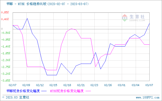 生意社甲醇-MTBE(下游产品)价格走势比较图: