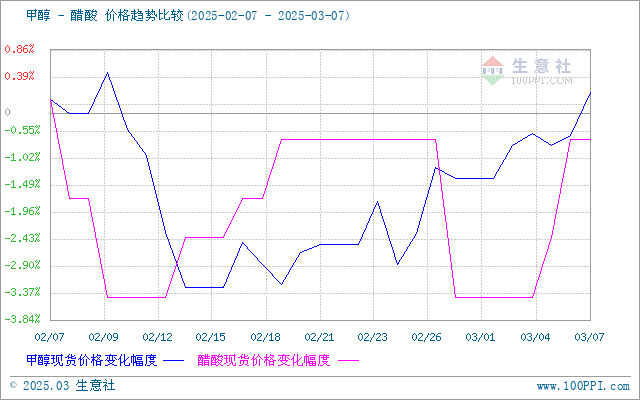 生意社甲醇-醋酸(下游产品)价格走势比较图: