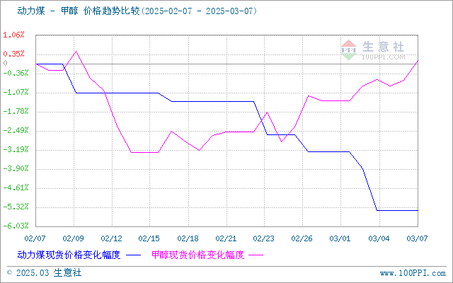 生意社煤炭/动力煤(上游原料)-甲醇价格走势比较图: