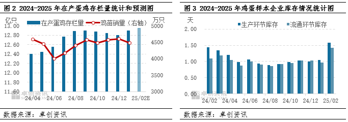 在产蛋鸡存栏量增多:鸡蛋供应量主要受到在产蛋鸡存栏量和库存影响。数据显示,1月在产蛋鸡存栏量环比增加0.70%,2月新增开产蛋鸡数量虽略有降低,但年后老母鸡出栏量明显减少,预计2月全国在产蛋鸡存栏量继续提升,鸡蛋供应进一步增多。此外,受春节假期期间企业放假影响,鸡蛋市场流通速度放缓,截至19日,2月鸡蛋生产和流通环节库存天数较1月平均水平分别增加0.53天和0.47天,导致鸡蛋供应压力进一步加剧。