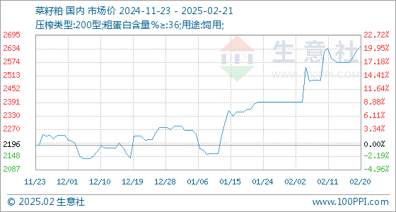 2月21日生意社菜籽粕基准价为2645.00元/吨