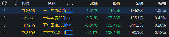 值得注意的是,昨日30年期主力合约跌0.56%,10年期主力合约跌0.20%,5年期主力合约跌0.14%,2年期主力合约跌0.06%。