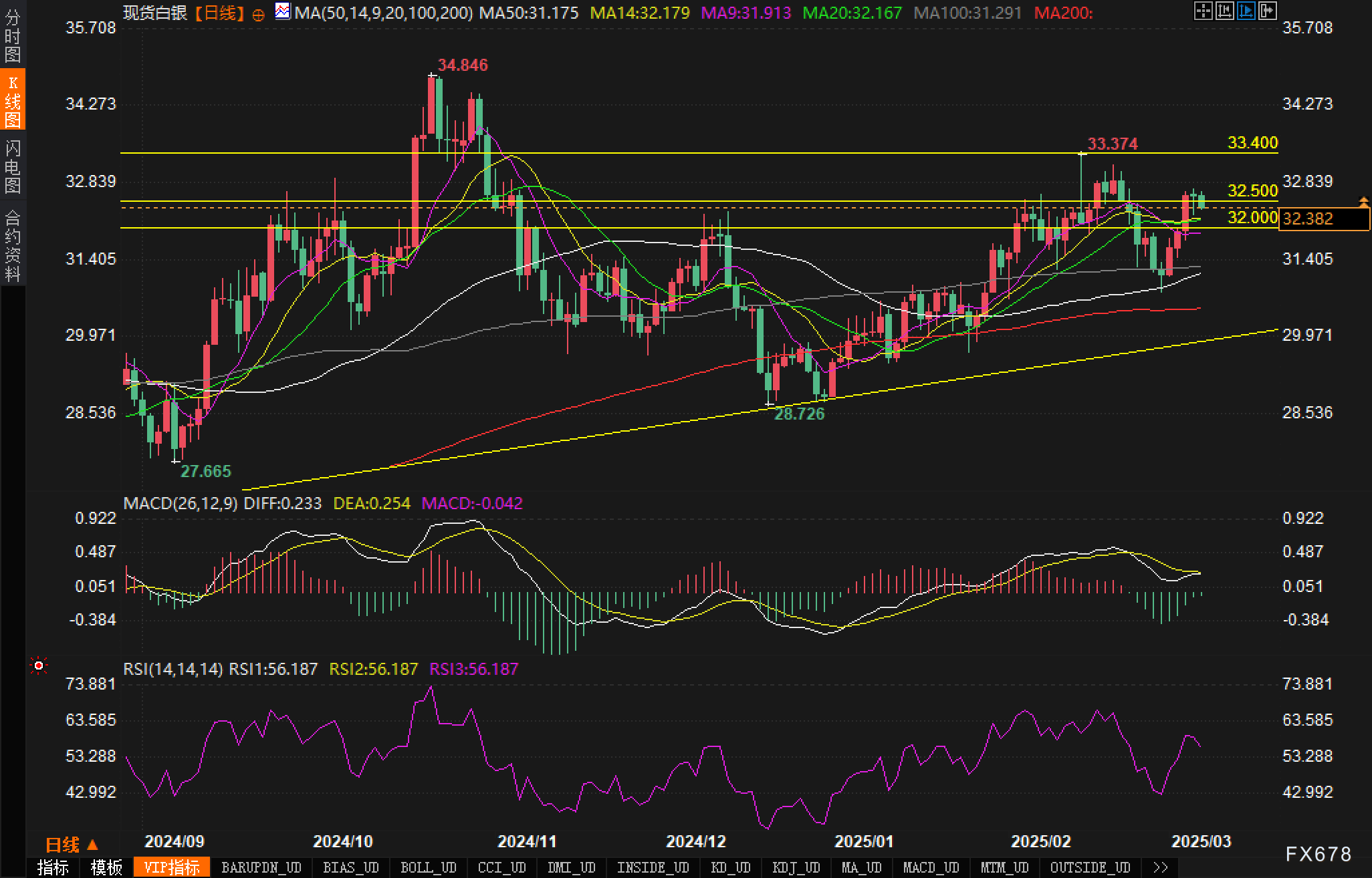 撰写本文时,现货白银报32.381美元/盎司,日内下跌0.71%。