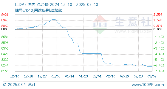 3月10日生意社LLDPE基准价为8230.00元/吨