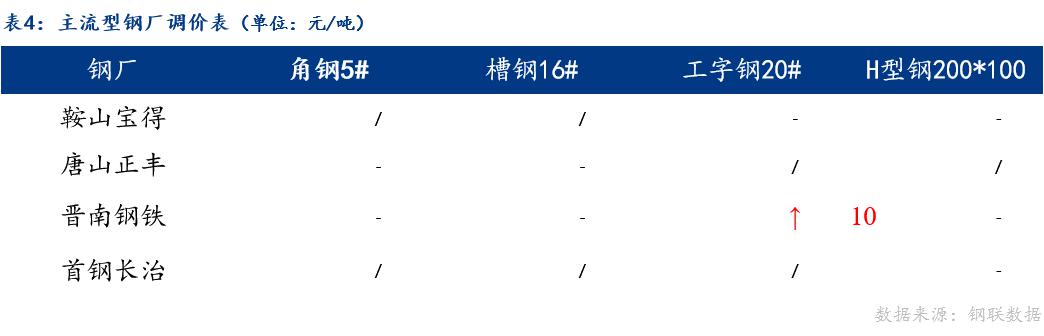 2、成交量为20家型钢厂当日成交,其中包括工字钢6家、角钢7家、槽钢7家。