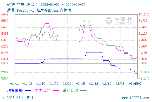 在河钢3月硅铁招标价格尚未敲定,市场方向有待明朗,业内多数目光聚焦于此。就当前情况分析,一方面,河钢招标采购数量有增,叠加部分地区电价最新结算电价出台,稳中有所上调,成本为此走高或使业内部分信心得到提振,进一步降价走货积极性不高;一方面,虽当前处于钢招需求释放之际,但亦或是受“买涨不买跌”情绪影响,近期多数采购商操作态度比较谨慎,采购积极性不高且存在一定的压价情绪,市场需求并未充分释放,而与此同时期货行情也是震荡偏弱运行,难以对现货市场形成有利支撑,多空信息交织下,近期买卖双方博弈态势明显,市场报价难有明显调整。据生意社商品行情分析系统,3月7日硅铁(牌号:FeSi75~B;粒度等级/mm:自然块)宁夏地区市场报价在5750-5950元/吨,市场均价5904元/吨,跌0.89%。