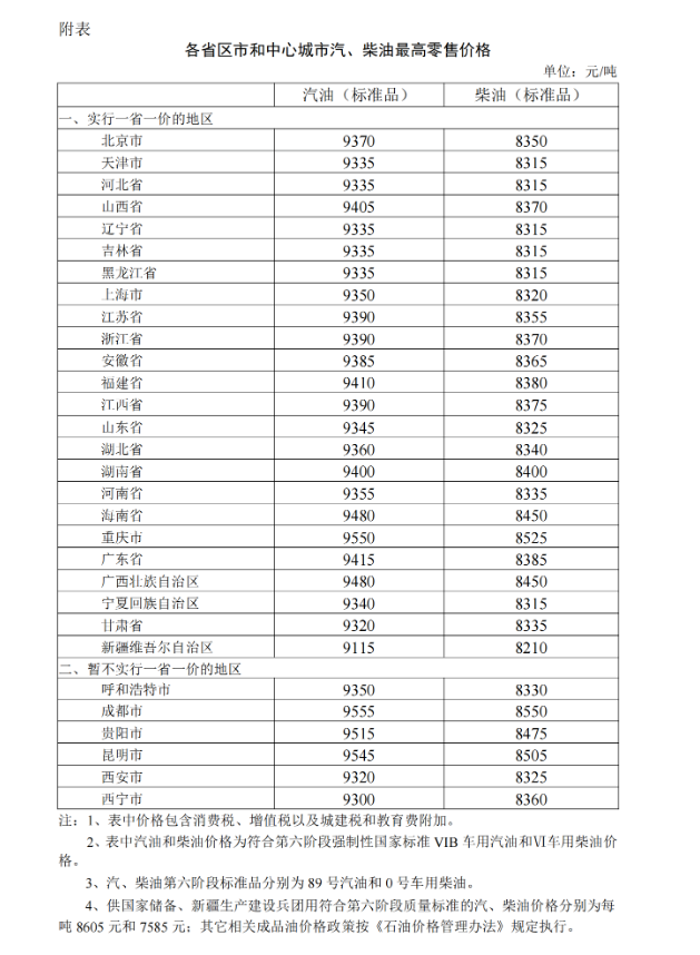 3月5日,据国家发展改革委消息,根据近期国际市场油价变化情况,按照现行成品油价格形成机制,自2025年3月5日24时起,国内汽、柴油价格(标准品,下同)每吨分别降低135元和130元。调整后,各省(区、市)和中心城市汽、柴油最高零售价格见附表。