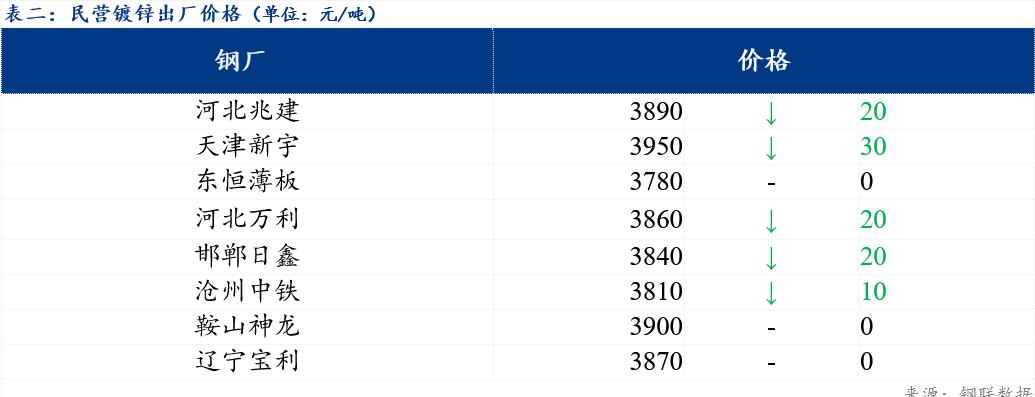 今日北方民营钢厂镀锌出厂指导价在3780元/吨-3950元/吨。