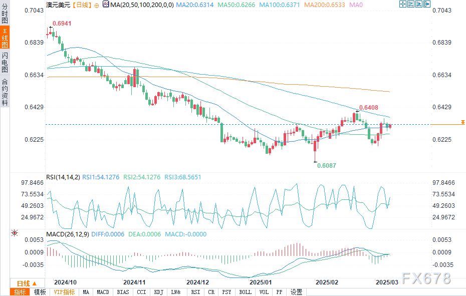 总体来看,澳元/美元在短期内缺乏明显的趋势性,多空力量处于相对平衡状态,但短期上涨动力有减弱迹象,未来价格可能在均线附近继续震荡。