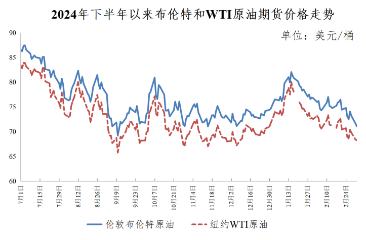 国家发展改革委价格监测中心有关负责人在接受《证券日报》记者采访时也表示,受供应增长和需求低迷预期影响,本轮计价周期内国际油价震荡下降。以布伦特原油期货为例,调价周期内,其价格从每桶76美元降至71美元,为近半年来低位。从供应方面来看,除了“OPEC+”产油国近期再次重申,将按计划从4月份开始提高原油产量(这是其自2022年以来首次增产)外,美国能源信息署最新披露数据显示,美国原油产量已增至创纪录的1350万桶/日;美国贝克休斯能源服务公司数据显示,美国石油和天然气钻机数量连续五周增加,截至2月28日达到593个,意味着后期产量将继续增长。需求方面,美国开始对加拿大和墨西哥等国加征关税,市场对由此可能导致的经济低迷和需求下滑产生担忧。