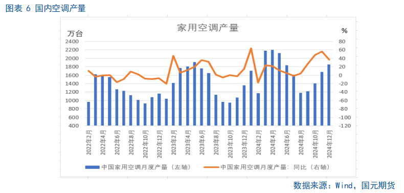 根据产业在线数据, 2025年1月,中国家用空调生产同比下滑4.2%至1667.2万台,总销量同比增长8.7%至1773.4万台;同期家用空调出口量同比增长17.0%至1052.1万台,成为拉动市场增长的主要动力。