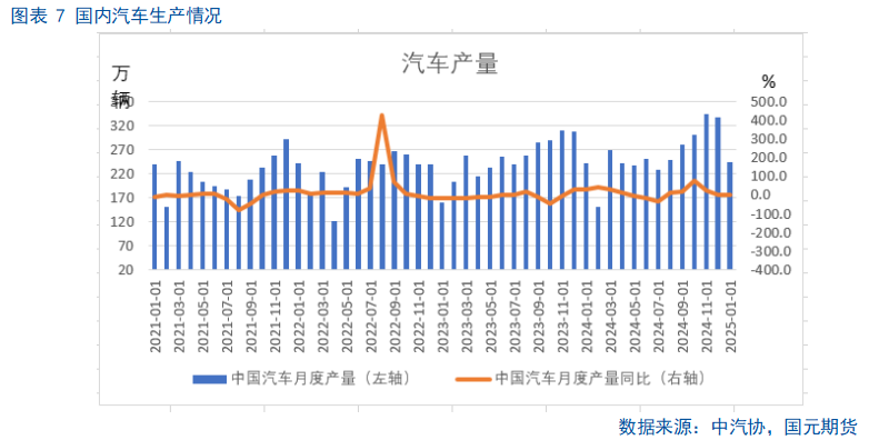 国家统计局数据显示,1月汽车产量同比下降2.2%至245万辆;同期新能源汽车产量同比增长29%至101.5万辆。