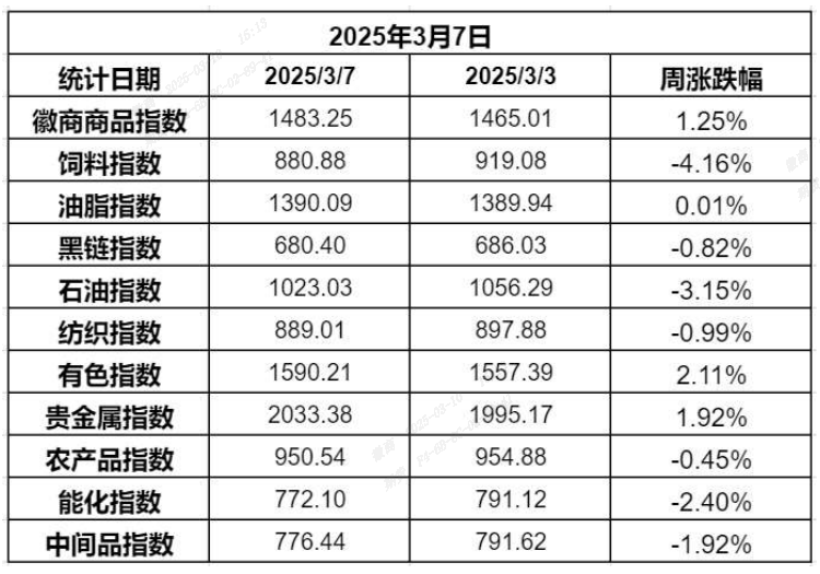 【指数周报】徽商商品指数周报(2025年3月10日)