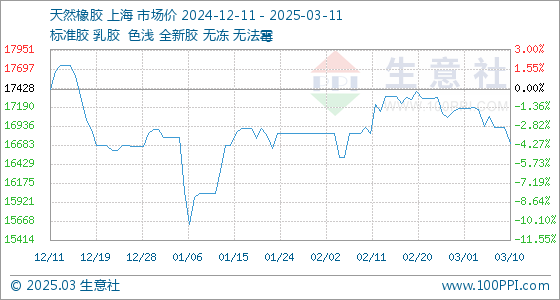 3月11日生意社天然橡胶基准价为16700.00元/吨