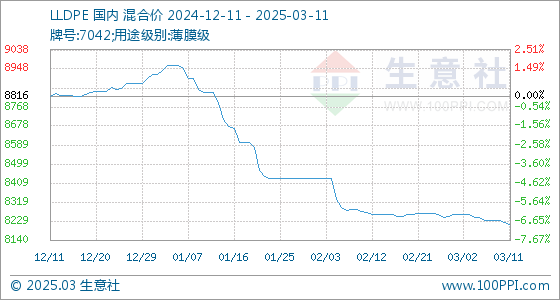 3月11日生意社LLDPE基准价为8225.00元/吨