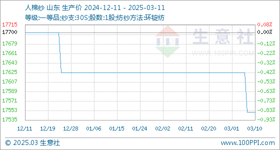 3月11日生意社人棉纱基准价为17550.00元/吨