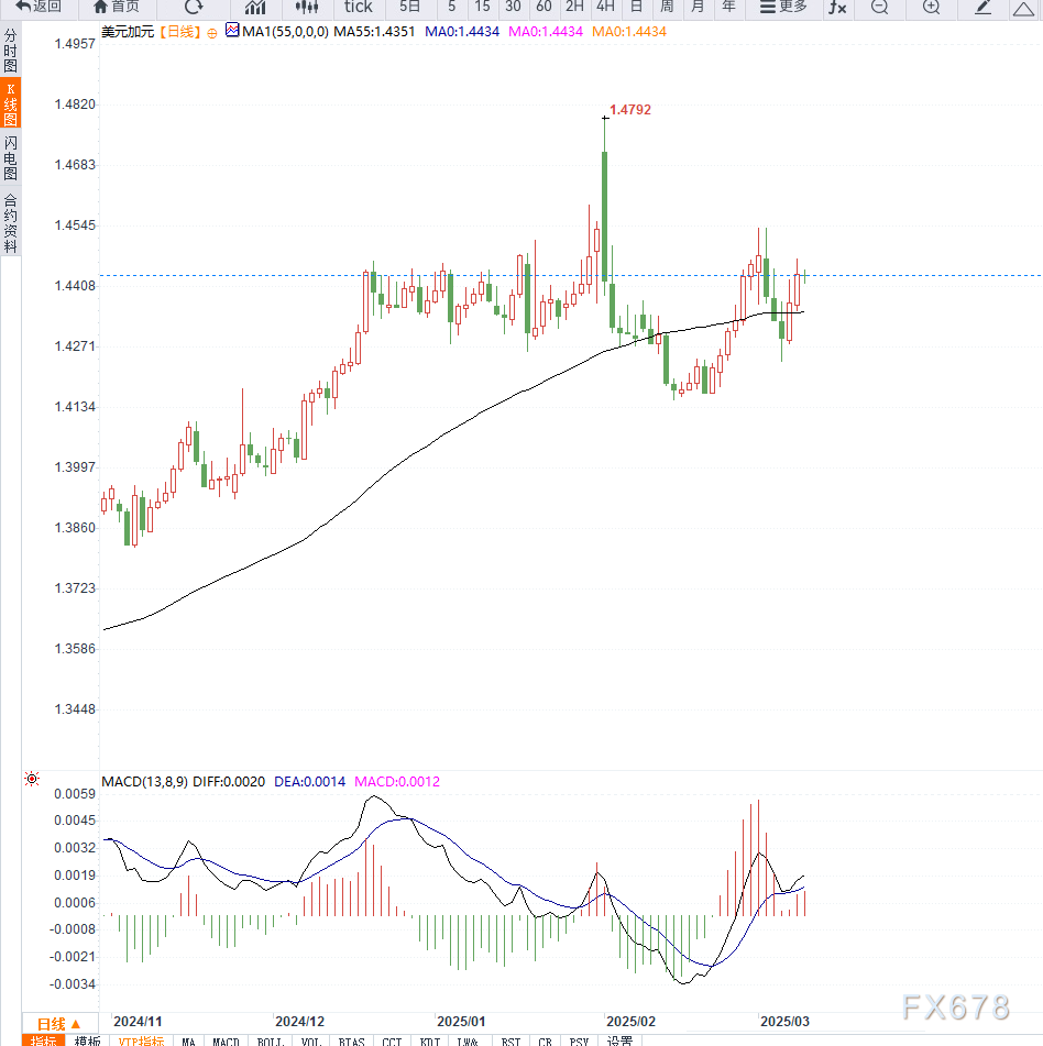 尽管市场预期降息,但加元并未出现大幅下跌,反而因美元走弱而维持强势。美元兑加元(USD/CAD)连续两日下跌,目前交投于1.4440附近,显示出市场对美联储和加拿大央行政策前景的博弈。