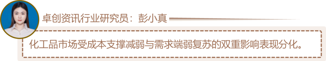 卓创资讯研究员彭小真:化工品市场受成本支撑减弱与需求端弱复苏的双重影响表现分化。