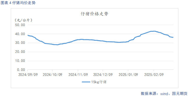 截止3月4日,仔猪出栏均价36.11元/公斤,较上周环比下跌2.11元/公斤。仔猪自1月以来,由于市场对年中存看涨预期,加之当时仔猪价格偏低,补栏积极性升温,价格持续走强。节后,随着补栏成本上升,以及需求低迷,补栏情绪有所降温,价格高位回落。