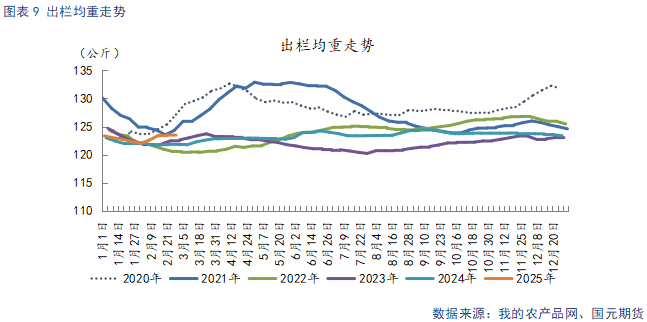 截止2月28日,生猪出栏均重123.51公斤,较上周环比增加0.03公斤。标肥价差较开市初期有所收窄,不过仍有一定价差空间,大猪出栏意愿较强。随着饲料成本上升,标肥价差继续收窄,预计出栏体重将出现下调。
