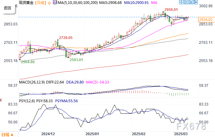 特朗普在北美交易时段再次发出关税威胁,这推动金价站稳在2900美元上方。