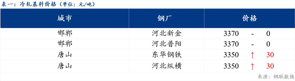今日北方市场冷轧基料3.0*1010*CSPHC河北普阳价格为3370元/吨,较上一期价格持稳,河北纵横价格为3350元/吨,较上一期价格上涨30元/吨。镀锌方面,今日北方市场民营钢厂价格部分上涨30元/吨。轧硬方面,当前主流报价3535-3660元/吨。市场方面,成交氛围较上周五更为活络,商家反馈询单成交多集中在上午,3月4日起全市独立球团(4家),独立热轧(77家)等行业全部停产调控,唐山部分钢厂将启动提级强化管控措施。
