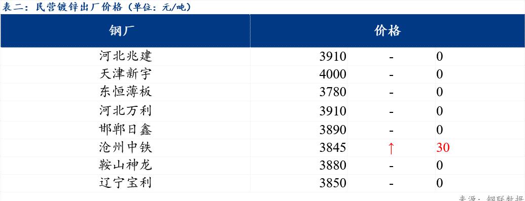 今日北方民营钢厂镀锌出厂指导价在3780元/吨-4000元/吨。