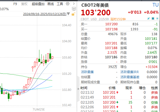 在美股下跌的过程中,美债与美股的“跷跷板”效应显现。2年期美国国债期货自2月下旬以来,已累计上涨近1%。