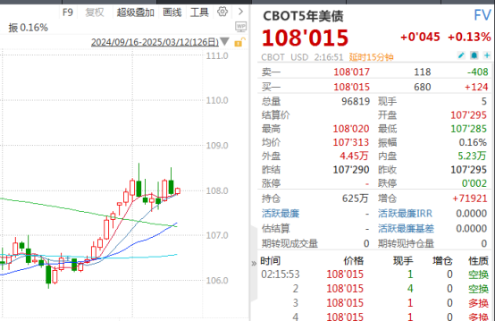 5年期美国国债期货自2月下旬以来,已累计上涨超1.5%。
