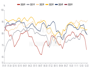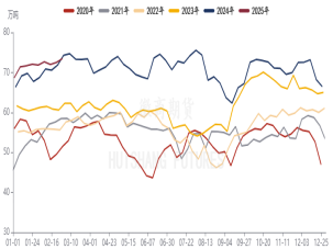 截止至2025年2月28日,钢联数据统计纯碱整体开工率为87.85%,环比增加0.55%,同比减少1.97%;纯碱周度产量为73.47万吨,环比增加1.35%,同比减少1.14%。从开工率季节性走势中我们可以看出,近期纯碱开工率较去年同期基本持平,处于历史较高水平,只要维持高开工,那么基本面就依然是偏弱的。