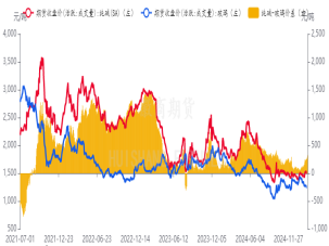 当前,盘面上所对标低价货源的厂家大多已封单,后续涨价预期强烈,特别是阿拉善地区,其在本轮行情中价格尚未调整。仓单压力现阶段主要集中于03合约,随着交割日临近,大概率会面临负反馈压力。然而,05合约因众多检修预期,再结合纯碱的交割规则来看,仓单压力相对较小。