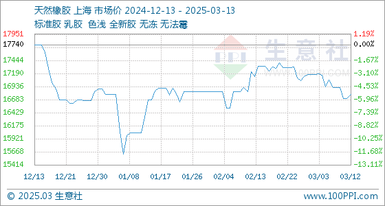 3月13日生意社天然橡胶基准价为16779.00元/吨