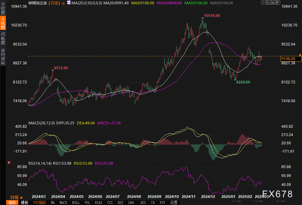 汇通财经APP讯——周四(3月14日),马来西亚衍生品交易所(BMD)棕榈油主力合约收于4533林吉特/吨,单日反弹1.16%,部分收复此前三个交易日累计2.98%的跌幅。市场在东南亚低产现实与全球需求忧虑的双向拉扯中呈现震荡格局,交易量较前日放大12%显示多空分歧加剧。
