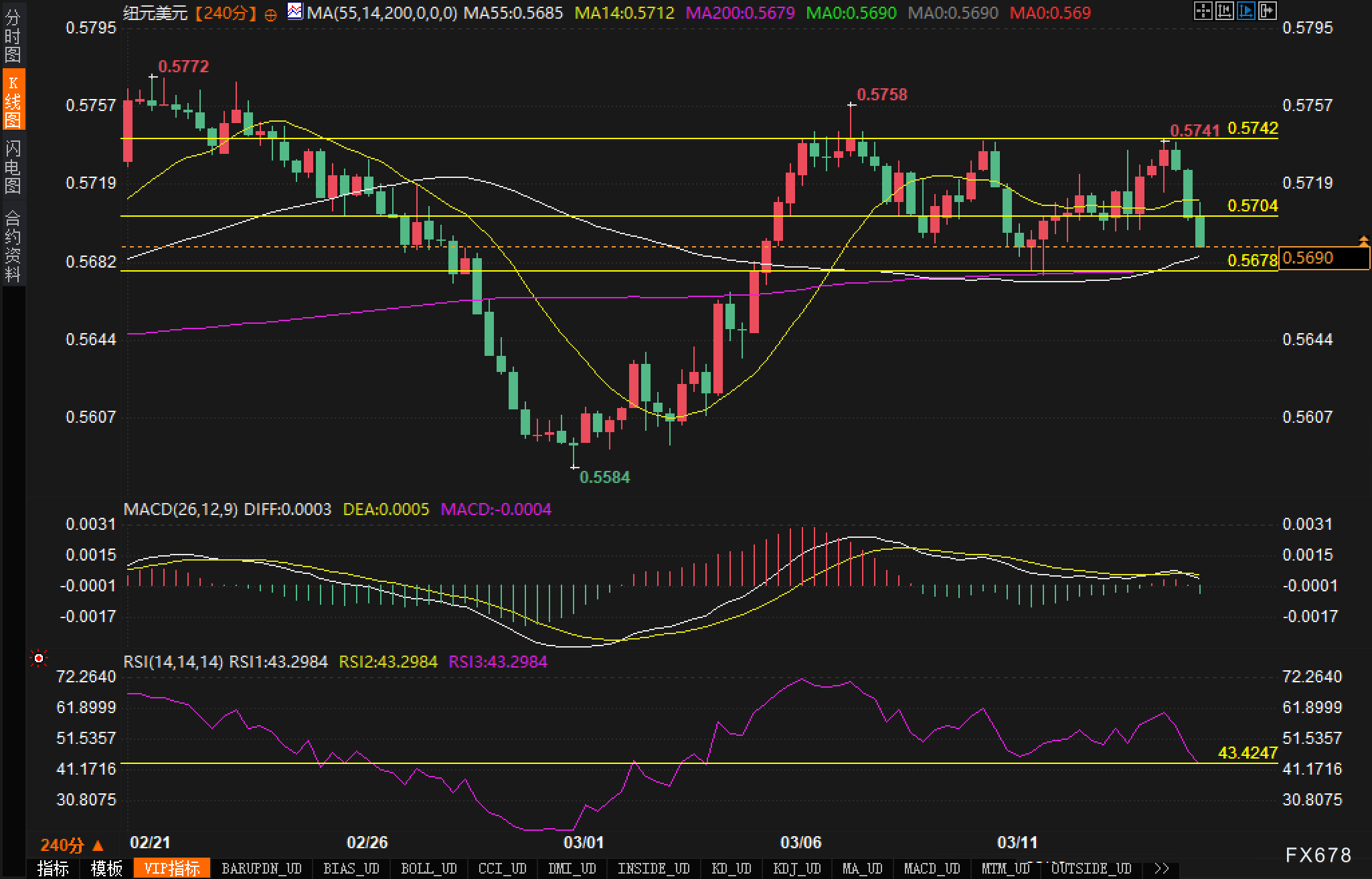 汇通财经APP讯——周四(3月13日)美市盘前,纽元兑美元(NZD/USD)承压,汇价回落至0.5700关口下方。近期,美国公布的一系列通胀数据和就业报告对市场情绪造成一定扰动,而新西兰经济指标相对平淡,纽元的波动更多受美元影响。
