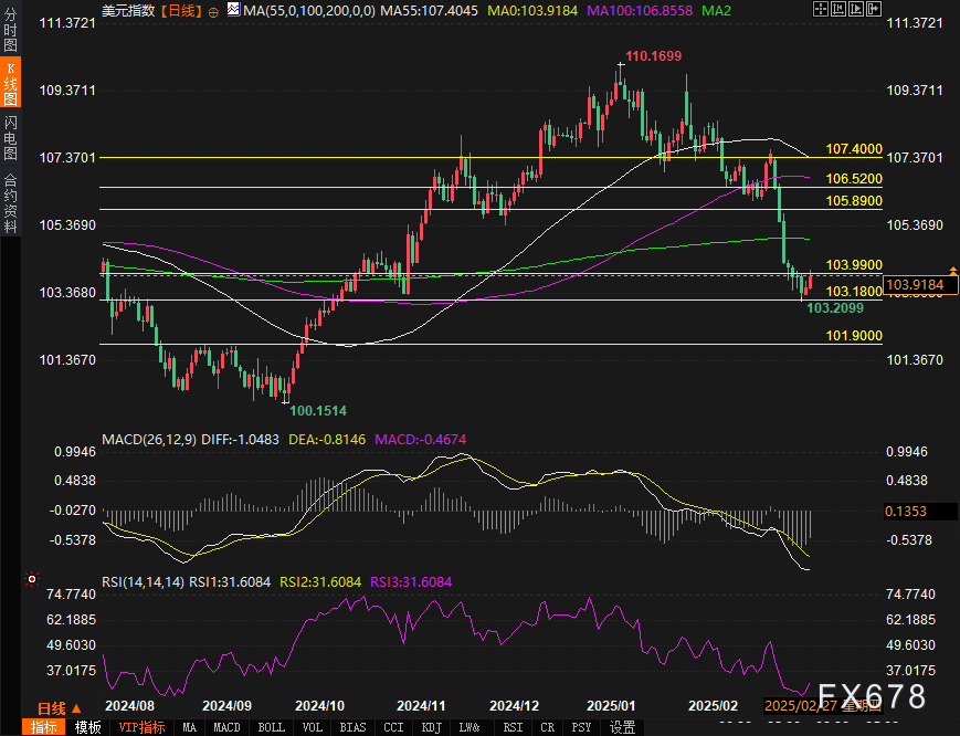 美元指数日线级别形成看涨吞噬形态,但200日均线(105.02)与年内高点105.89构成强阻力带。若周线能站稳104.50上方,或将开启向105.50区域的冲刺。"但该机构同时警告,动量指标出现顶背离迹象,若美债收益率意外回落,可能触发向103.00区域的快速修正。