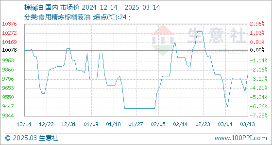3月14日生意社棕榈油基准价为9820.00元/吨