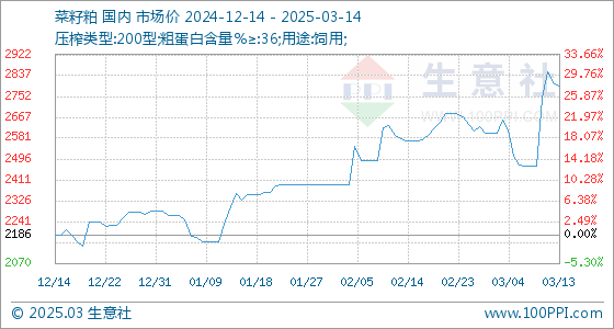 3月14日生意社菜籽粕基准价为2793.33元/吨