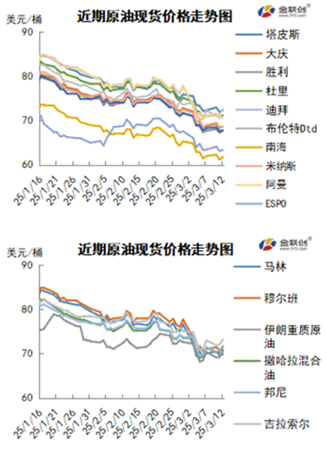周内,OPEC原油供应增加的预期导致油价承压下跌。根据OPEC+的计划,从4月份开始,OPEC+每月将增加13.8桶/日的石油产量,直至逐步取消220万桶/日的减产。OPEC数据还显示,由于长期无视产量配额的哈萨克斯坦进一步突破了协议规定的上限,2月份OPEC+原油日产量增加36.3万桶。此外,投资者对经济以及能源需求前景的担忧情绪升温也利空油价,特朗普在接受采访时表示,部分关税可能会随着时间的推移在4月2日之后上调,投资者担心美国关税将对全球经济增长和燃料需求产生影响。