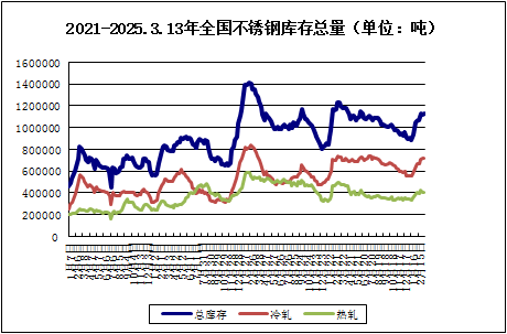 本周不锈钢库存合计112.7吨,较上周上涨0.36%,其中,冷轧库存上涨,热轧库存下跌。