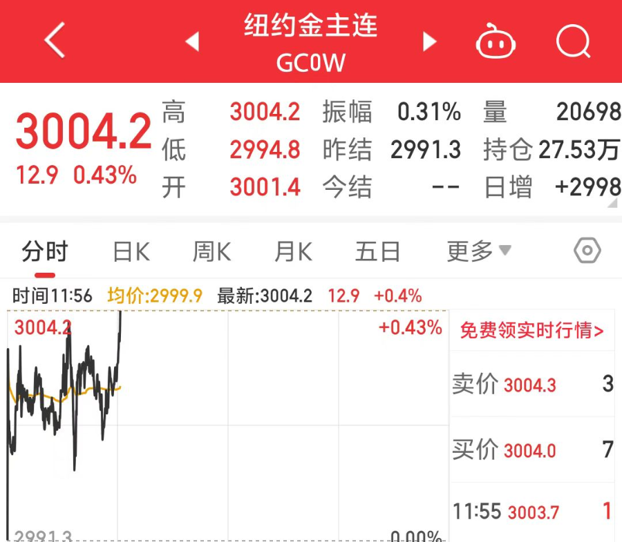 兄弟们,我是韭哥。就在今天早上,黄金价格冲破3000美元/盎司大关。