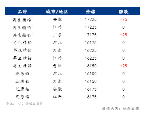安徽市场A企业再生精铅含税价17230元/吨出厂成交600吨,反馈日内下游询价接货意愿较好,成交尚可。