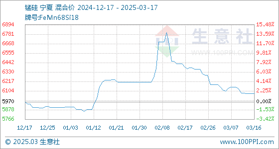 3月17日生意社锰硅基准价为6070.00元/吨