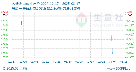3月17日生意社人棉纱基准价为17550.00元/吨