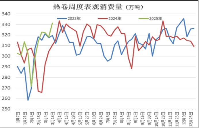 本期热卷实际产量318.65万吨,环比增7.1万吨;钢厂库存84.32万吨,环比下降3.71万吨;社库331.9万吨,环比减少8.99万吨;总库416.22万吨,环比减少12.7万吨,表需331.35万吨,周环比增加13.32万吨。