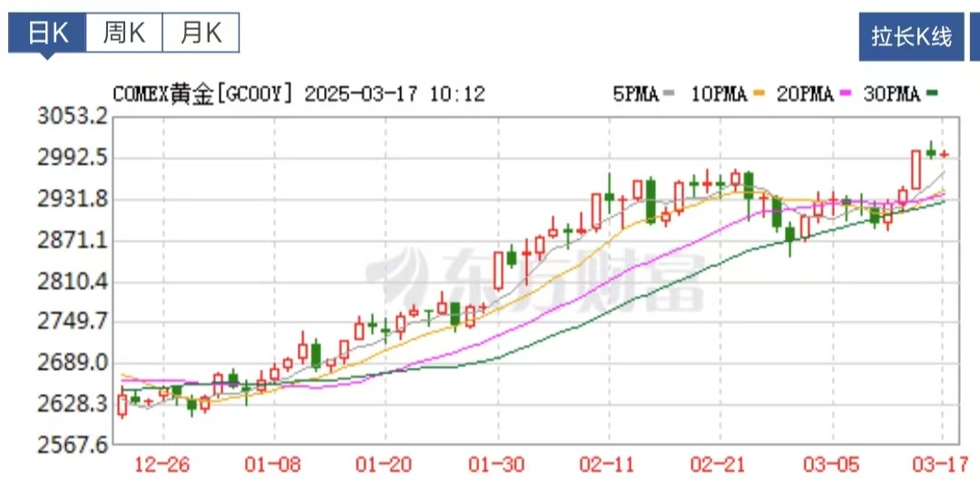 北京时间3月14日凌晨,COMEX黄金期货价格盘中首次突破3000美元/盎司,创历史新高。当日晚间,伦敦现货黄金也突破3000美元大关,黄金再次成为热点话题。